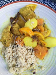 - Y ajouter les pruneaux, les épices, la PDT coupées en rondelles, le zeste d’orange et l’orange coupée en cartier