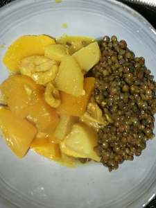 - Servir avec des lentilles cuites (15 minutes à l’eau bouillante).